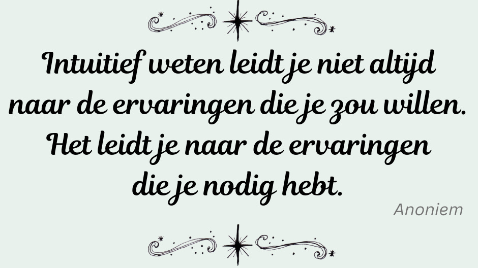 Niet alles wordt ons getoond. We kunnen wel de wil hebben en de inspanning doen om onze schaduwen en spanningen onder ogen te komen en te verwerken, maar dat is een proces dat tijd vraagt, hoe graag we ook vooruit willen. Soms moet men wachten tot het juiste moment. Dat moment heet NU en is eeuwig.